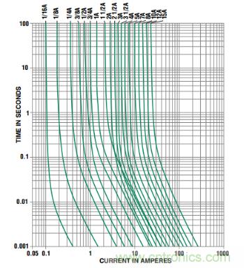 圖1 保險(xiǎn)絲電流時(shí)間特性