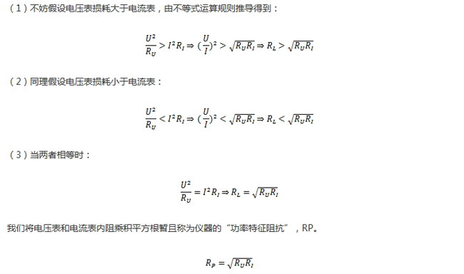 (2)電流表外接時,電流表讀數(shù)為負載電流和電壓表電流之和,電壓表讀數(shù)即為負載電壓,因此儀器的測量結(jié)果中包含了電壓表的損耗功率PU。
