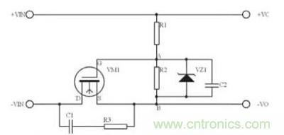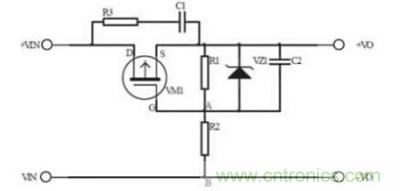 VZ1為穩(wěn)壓管防止柵源電壓過高擊穿mos管。NMOS管的導通電阻比PMOS的小,最好選NMOS。