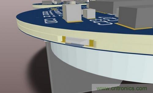 圖2:在圓形PCB板上為SMT LED而設(shè)計(jì)的凹槽。
