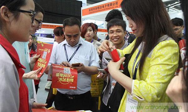 電子商務平臺的崛起,也使得營銷手段更加花樣百出地貼近消費者,再也不是以前坐等顧客上門挑選的被動局面,分銷商在展館里可謂是使出十八般武藝,力圖能激起消費者翻牌的欲望。這不,原先四處走動的觀眾,瞬間被抽中一百塊現(xiàn)金紅包的歡呼聲給吸引了過去,筆者也前往一探究竟,原來是華強電子網的展位上進行的免費認證超級買家抽紅包的活動。