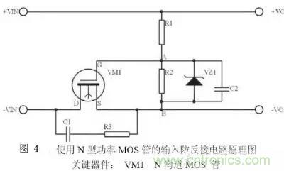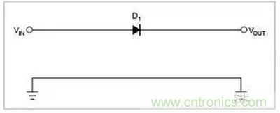 1.通常情況下直流電源輸入防反接保護電路是利用二極管的單向導電性來實現(xiàn)防反接保護。如下圖1示: