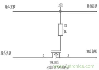 圖3利用了MOS管的開關特性,控制電路的導通和斷開來設計防反接保護電路,由于功率MOS管的內阻很小,現(xiàn)在 MOSFET Rds(on)已經(jīng)能夠做到毫歐級,解決了現(xiàn)有采用二極管電源防反接方案存在的壓降和功耗過大的問題。
