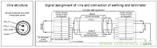 線纜的芯截面積要大于0.35~0.5 mm2 ,CAN_H對(duì)CAN_L的線間電容小于75 pF/m,如果采用屏蔽雙絞線,CAN_H (或CAN_L) 對(duì)屏蔽層的電容小于110 pF/m??梢愿玫亟档途€纜阻抗,從而降低干擾時(shí)抖動(dòng)電壓的幅度。
