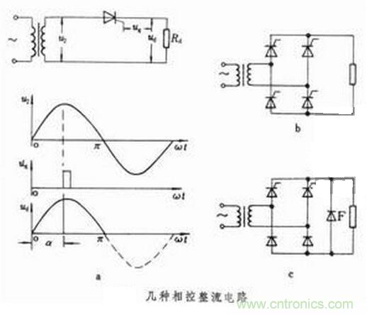 采用相位控制方式以實現(xiàn)負載端直流電能控制的可控整流電路??煽厥且驗檎髟褂镁哂锌刂乒δ艿木чl管。在這種電路中,只要適當控制晶閘管觸發(fā)導(dǎo)通瞬間的相位角,就能夠控制直流負載電壓的平均值。故稱為相控。