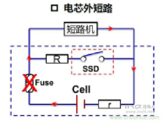 電芯層面設計Fuse:每個Cell的內部設計一個Fuse,在短路瞬間,斷開電流回路,起到短路保護的作用。