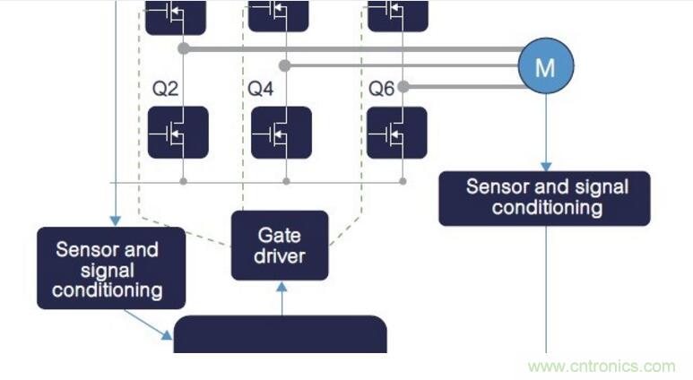 在電橋拓?fù)鋬?nèi),反向恢復(fù)過程從下橋臂開關(guān)(圖7中的Q2)續(xù)流結(jié)束時開始,到上橋臂開關(guān)(圖7中的Q1)開始導(dǎo)通時終止,且最終的恢復(fù)電流加到上橋臂電流內(nèi)。連同上橋臂開關(guān)上的額外電流,下橋臂反向恢復(fù)過程與Vds≈0V到Vdc換向操作,可能會在下橋臂開關(guān)閘源電壓上產(chǎn)生雜散跳變電壓,因?yàn)橄聵虮?/font>Ciss(輸入電容)是透過Crss(Miller電容)完成充電過程。
