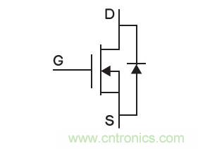 圖1所示是一個N溝道功率MOSFET的典型符號。本征體漏二極管由p-body和n-drift兩個區(qū)組成,如圖1所示,體漏二極管與MOSFET的導(dǎo)電溝道并聯(lián)。