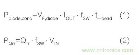事實(shí)上,下橋臂體二極管導(dǎo)通損耗(Pdiode,cond)和反向恢復(fù)損耗(PQrr)與二極管正向壓降(VF,diode)及其反向恢復(fù)電荷(Qrr)密切相關(guān):