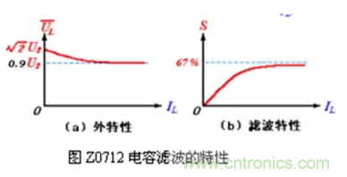 4. 電容濾波電路的外特性(指UL與IL之間的關(guān)系)和脈動(dòng)特性(指S與IL 之間的關(guān)系)比較差,如圖Z0712 所示??梢钥闯鲚敵鲭妷篣L和脈動(dòng)系數(shù)S隨著輸出電流IL 的變化而變化。當(dāng)IL=0(即RL= ∞ )時(shí),UL = U2(電容充電到最大值后不再放電),S = 0。當(dāng)IL增大(即RL減?。r(shí),由于電容放電程度加快而使UL下降,UL 的變化范圍在 U2 ~0.9 U2之間(指全波或橋式),S變大。所以,電容濾波一般適用于負(fù)載電流變化不大的場合。