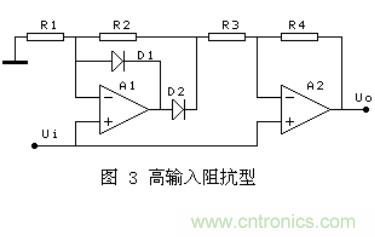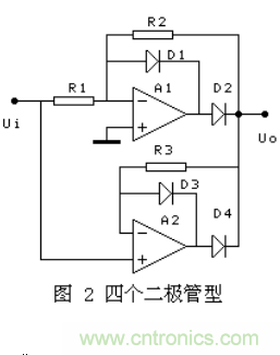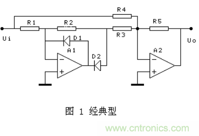 其它幾種,有的在D2導(dǎo)通的半周內(nèi),通過A2的復(fù)合實現(xiàn)A1的負(fù)反饋,對有些運放會出現(xiàn)自激. 有的兩個半波的輸入阻抗不相等,對信號源要求較高。