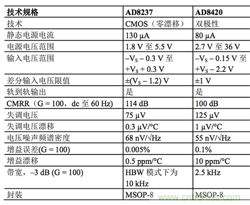 表 2 是對兩款儀表放大器進(jìn)行了比較。都使用了最小和最大規(guī)格。有關(guān)更多詳情和最新信息,請參見產(chǎn)品數(shù)據(jù)手冊。