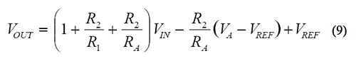 如果相對于原始等式中的 VREF 取 VOUT 和 VA,則可得到相同的結(jié)果。VA(MAX) – VREF 也應(yīng)替換等式(7)中的 VA(MAX)。