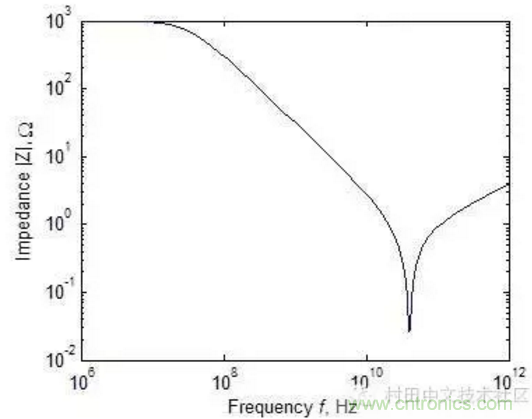 一個(gè)典型的1pF電容阻抗絕對值與頻率的關(guān)系