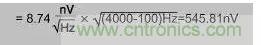 輸出噪聲=等量輸入噪聲×增益=545.81nV×5=2.73uV(適用于1級增益)或545.81nV×100=54.58uV(適用于2級增益)。