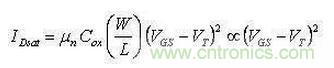 綜合以上閾值電壓和載流子遷移率這兩種因素的不同影響,則根據(jù)MOSFET飽和電流的表示式即可得知: