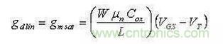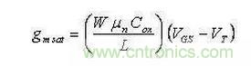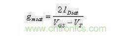 ②在飽和電流IDsat一定時(shí):飽和跨導(dǎo)gmsat卻與飽和電壓(VGS-VT)成反比: