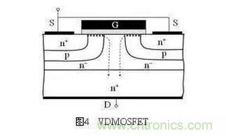 【答】如圖4所示,源-漏電流是從芯片表面向下流動(dòng)的,并在電流通路的兩側(cè)是pn結(jié),因此這種電流輸運(yùn)的過(guò)程,從工作原理上來(lái)看,就相當(dāng)于是一個(gè)寄生JFET。從而可以把VDMOSFET等效為一個(gè)MOSFET與一個(gè)寄生JFET的串聯(lián)組合,其中很大部分n-漂移區(qū)就相當(dāng)于是寄生JFET的溝道。
