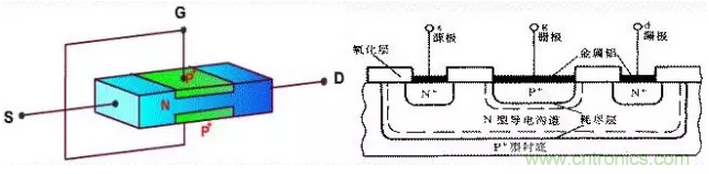 ※場效應分類:場效應管主要有結型場效應管(JFET)和絕緣柵型場效應管(IGFET)。絕緣柵型場效應管的襯底(B)與源析(S)連在一起,它的三個極分別為柵極(G)、漏極(D)和源極(S)。晶體管分NPN和PNP管,它的三個極分別為基極(b)、集電極(c)、發(fā)射極(e)。場效應管的G、D、S極與晶體管的b、c、e極有相似的功能。絕緣柵型效應管和結型場效應管的區(qū)別在于它們的導電機構和電流控制原理根本不同,結型管是利用耗盡區(qū)的寬度變化來改變導電溝道的寬窄以便控制漏極電流,絕緣柵型場效應管則是用半導體表面的電場效應、電感應電荷的多少去改變導電溝道來控制電流。它們性質的差異使結型場效應管往往運用在功放輸入級(前級),絕緣柵型場效應管則用在功放末級(輸出級)。場效應管的工作原理和三極管其本一樣,只是他們一個是壓控型元件,一個是電流控制元件,場效應管只有一個PN結,如圖所示1-1