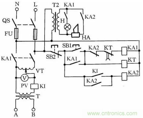 若被測物絕緣擊穿,電流即迅速增加,過電流繼電器KI動作,KA2得電動作并自鎖,KA1失電,KA1的常開觸點切斷主回路電源,蜂鳴器HA發(fā)出聲響,按下SB2后電路全部關(guān)斷。應用操作這種儀器時,要特別注意人身安全,工作通電時,高壓測試區(qū)禁止人靠近。