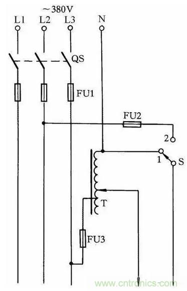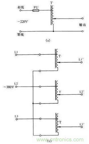 單相自耦調(diào)壓器在工廠等應用極為廣泛。其接線線路如圖35(a)所示。