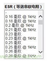 圖6:超級電容器的ESR (等效串聯(lián)電阻)篩選列表