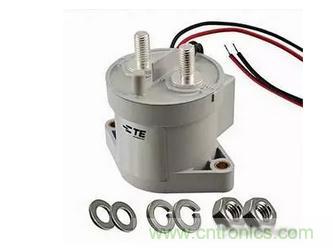 圖4:TE Connectivity的EV200AAANA密封式非模塊化接觸器可利用12V控制輸入切換500A電流。(圖片來(lái)源:TE Connectivity)