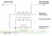 射頻電流探頭是一個初級類型為插入式的射頻電流變壓器。即,當(dāng)我們將探頭夾在待測電流流經(jīng)的導(dǎo)線或者電纜上的時候,這些導(dǎo)體就構(gòu)成了變壓器的初級線圈。這種探頭的夾合特性使得它很容易被安置在任意導(dǎo)體或者電纜的四周。其本質(zhì)就是一個寬帶的高頻變壓器。利用電流探頭,可以在不對電路造成物理影響的情況下,實現(xiàn)對電纜上的高頻電流的測量。既然打算將電流探頭夾合在導(dǎo)線上,那么如圖2 所示的變壓器初級實際上就是待測共模電流流過的電導(dǎo)體本身。另外,因為共模電流被認(rèn)為是流過導(dǎo)體后,再經(jīng)過回流導(dǎo)體(例如:框架,共地面或者接地)返回到電源的,所以這個變壓器的初級線圈通常被認(rèn)為只有一匝。在某些電流探頭的模型中,次級輸出端內(nèi)部接的是阻性負(fù)載,這樣可以在一個很寬的頻率范圍內(nèi)提供非常穩(wěn)定的轉(zhuǎn)移阻抗。
