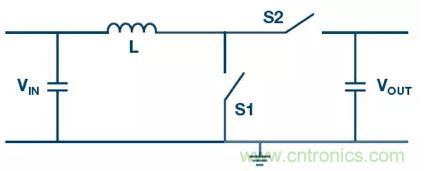 圖1顯示了升壓轉(zhuǎn)換器的原理圖。在導(dǎo)通時(shí)間內(nèi),開(kāi)關(guān)S1閉合,能量在線(xiàn)圈L中存儲(chǔ)。電感上的電流隨輸入電壓和地電位的差值呈線(xiàn)性增加。在關(guān)閉期間,當(dāng)S1打開(kāi)并且S2關(guān)閉時(shí),存儲(chǔ)在電感上的能量被釋放輸出。在此時(shí)間段內(nèi),電感上兩端的電壓對(duì)應(yīng)于輸出電壓減去輸入電壓。