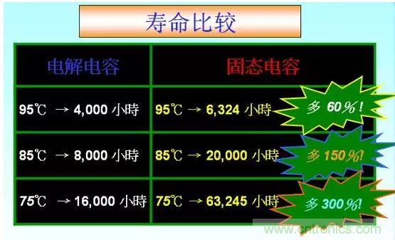使用固態(tài)電容好處二:壽命長,穩(wěn)定性好