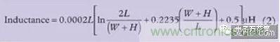 帶狀電感是另外一種需要考慮的寄生效應,它是由于印制線過長或缺乏接地平面引起的。(公式二)顯示出計算印制線電感(Inductance)的公式??蓞⒖?圖六)。