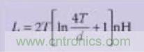 通孔是另外一種寄生源;它們能引起寄生電感和寄生電容。(公式三)是計算寄生電感的公式,請參考(圖八)。
