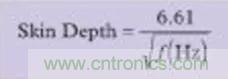 在高頻段,必須考慮一種稱為趨膚效應的現(xiàn)象。趨膚效應會引起電流流向?qū)Ь€的外表面,結(jié)果會使得導線的橫截面變窄,因此使直流(DC)電阻增大。雖然趨膚效應超出了本文討論的范圍,這里還是給出銅線中趨膚深度(Skin Depth)的一個很好的近似公式(以cm為單位):