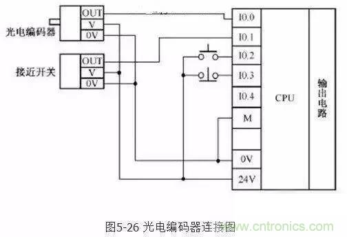 直流有源輸入輸入信號(hào)一般都是24V,這類信號(hào)與其他無源開關(guān)量信號(hào)混合接入PLC輸入點(diǎn)時(shí)電壓的0V點(diǎn)一定要接。上圖輸入點(diǎn)I0.0,I0.1連接光電編碼器,接近開關(guān)的輸出OUT信號(hào),它們的驅(qū)動(dòng)電源由PLC自身的24V電壓提供