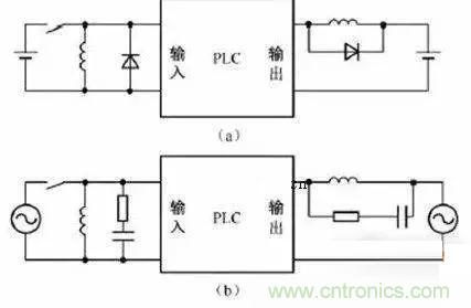 當(dāng)PLC輸入輸出端接有感性負(fù)載元件時(shí),直流輸出的續(xù)流管保護(hù)(直流電路兩端并聯(lián)續(xù)流二極管),交流輸出阻容吸收電路。