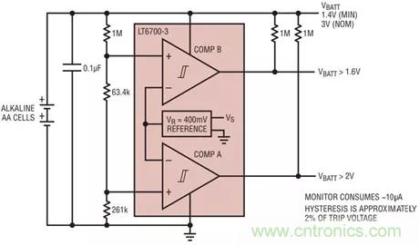 圖7:LT6700 支持與低至 400mV 的閾值進(jìn)行比較