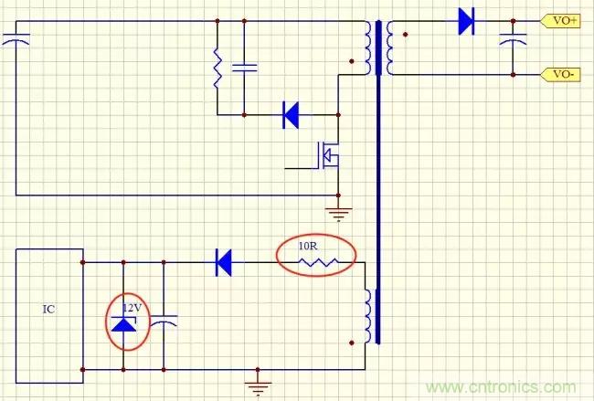 但是不要忘了,上面分析的這個(gè)還是比較好的情況來分析的,我們?cè)囅胍幌?,你的變壓器Vcc繞組上的電壓不可能設(shè)計(jì)的那么準(zhǔn),比如在輸出空載時(shí)Vcc繞組是14V,如果主輸出功率比較大,Vcc可能上升都18V,20V甚至更高,另外Vcc電壓飄跟電源功率,跟變壓器繞制工藝也有很大關(guān)系,這些都是不好把控的,調(diào)試的需要限流電阻也不一定是10Ω,所以這個(gè)方案肯定是不行的。
