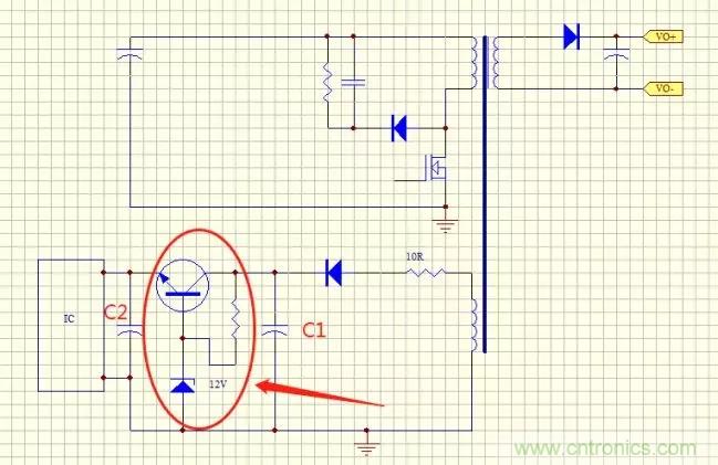 分析下來沒有什么大的功耗,消耗了一部分功耗但對(duì)于效率影響很小,比如要是沒有這個(gè)穩(wěn)壓電路,這個(gè)14V加在IC之上,而IC功率消耗很大一部分是用在驅(qū)動(dòng)輸出之上,IC上的大部分損耗為Vcc*Ig(Vcc電壓*驅(qū)動(dòng)電流),對(duì)于芯片來說,Vcc越高損耗就越大。所以加這個(gè)穩(wěn)壓電路沒有增大多少功耗,只是把本該IC的部分功耗轉(zhuǎn)移到了三極管之上,當(dāng)然主要是要把IC的供電電壓穩(wěn)住。