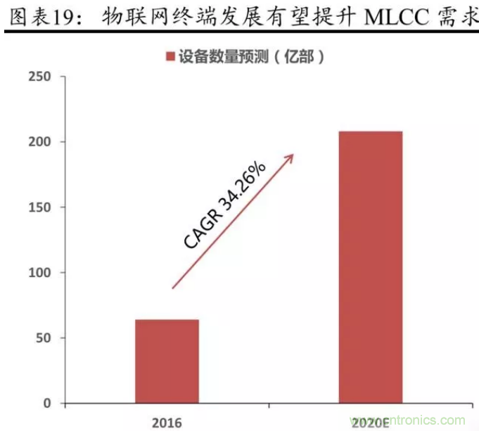 新能源車滲透率方面,一輛電動(dòng)汽車所需 MLCC 是目前普通內(nèi)燃機(jī)的6倍。據(jù)工信部,我國(guó)新能源汽車要爭(zhēng)取 2019 年 8%、2020 年 10%的滲透率。
