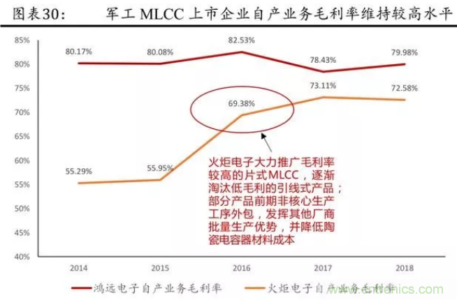 軍工 MLCC 上市企業(yè)自產(chǎn)自銷業(yè)務(wù)的毛利率有望維持較高水平。