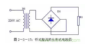 橋式整流電路每個(gè)整流二極管上流過(guò)的電流是負(fù)載電流的一半,與全波整流相同。通常情況下橋式整流電路都簡(jiǎn)化成圖2-3-17的形式。