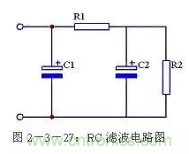 使用兩個(gè)電容和一個(gè)電阻組成RC濾波電路,又稱π型RC濾波電路。見圖2-3-27所示。這種濾波電路由于增加了一個(gè)電阻R1,使交流紋波都分擔(dān)在R1上。R1和C2越大濾波效果越好,但R1過(guò)大又會(huì)造成壓降過(guò)大,減小了輸出電壓。一般R1應(yīng)遠(yuǎn)小于R2。