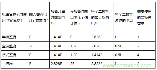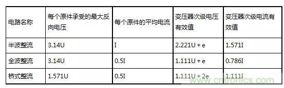 (1)常用整流電路性能對(duì)照