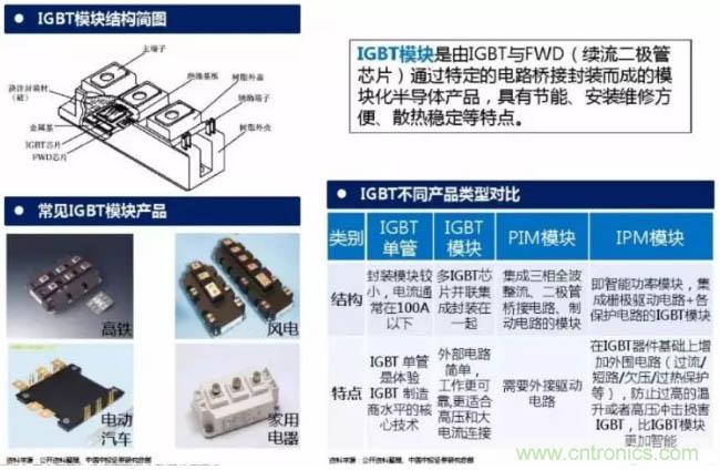 IGBT模塊是由IGBT與FWD(續(xù)流二極管芯片)通過特定的電路橋接封裝而成的模塊化半導(dǎo)體產(chǎn)品,具有節(jié)能、安裝維修方便、散熱穩(wěn)定等特點。