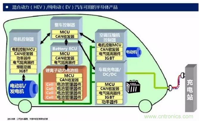 IGBT模塊在電動汽車中發(fā)揮著至關(guān)重要的作用,是電動汽車及充電樁等設(shè)備的核心技術(shù)部件。IGBT模塊占電動汽車成本將近10%,占充電樁成本約20%。IGBT主要應(yīng)用于電動汽車領(lǐng)域中以下幾個方面: