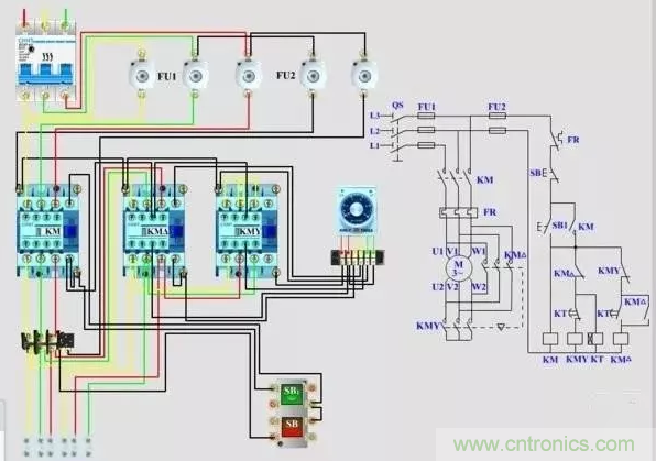 【導(dǎo)讀】星三角降壓?jiǎn)?dòng)需要:一個(gè)主電路接觸器,一個(gè)星啟動(dòng)接觸器,一個(gè)三角形運(yùn)行接觸器。最好用時(shí)間繼電器控制延時(shí),另外主電路接觸器要加熱過載繼電器用來保護(hù)電機(jī)。星三角降壓?jiǎn)?dòng)只適用于正常運(yùn)行為三角形接線的電機(jī)。以下是星三角啟動(dòng)電路實(shí)物接線手把手講解。