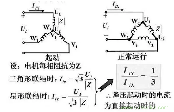 做星三角啟動(dòng)的電機(jī)有兩個(gè)重要的特性:星型啟動(dòng)電流和啟動(dòng)轉(zhuǎn)矩均變成額定電流的三分之一。