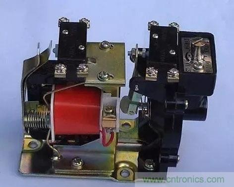 其中通電延時型時間繼電器動作過程是:線圈不通電時,線圈的銜鐵釋放壓住動作杠桿,延時和瞬時觸點不動作;當線圈得電吸合后,銜鐵被吸合,銜鐵上的壓板首先將瞬時觸點按下,觸點動作發(fā)出瞬時信號。這是因為銜鐵吸合動作杠桿不受壓力,在助力彈簧作用下慢慢動作(也就是延時),動作到達最大位置杠桿上的壓板按動延時觸點,觸點動作發(fā)出延時信號,直至線圈無電釋放,動作結束。其實物圖片如下圖: