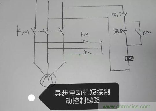 這種電路一般出現(xiàn)制動(dòng)問題,大多都是由于頻繁啟停導(dǎo)致剎車系統(tǒng)問題,而所謂的剎車系統(tǒng)就一交流接觸器,結(jié)合電路圖不難看出,當(dāng)交流接觸器常閉觸點(diǎn)出現(xiàn)問題,剎車系統(tǒng)就出問題了。diangon.com在電源斷開時(shí),電機(jī)在慣性作用下轉(zhuǎn)子不會(huì)立刻停下來,而且轉(zhuǎn)子存在剩磁,斷電時(shí)KM兩副常閉觸點(diǎn)將電動(dòng)機(jī)定子繞組短接,而轉(zhuǎn)子的慣性旋轉(zhuǎn)磁場切割定子閉合的繞組后,電機(jī)內(nèi)部就形成一種反向制動(dòng)力,從而達(dá)到制動(dòng)目的。