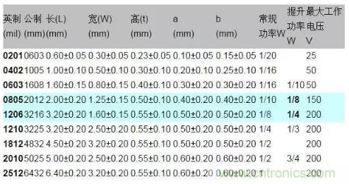 2)貼片電阻的封裝、功率與電壓關(guān)系如下表: